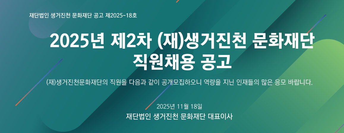 2025년 제2차 생거진천 문화재단 직원채용 공고 (음향, 조명 / ~12/1)