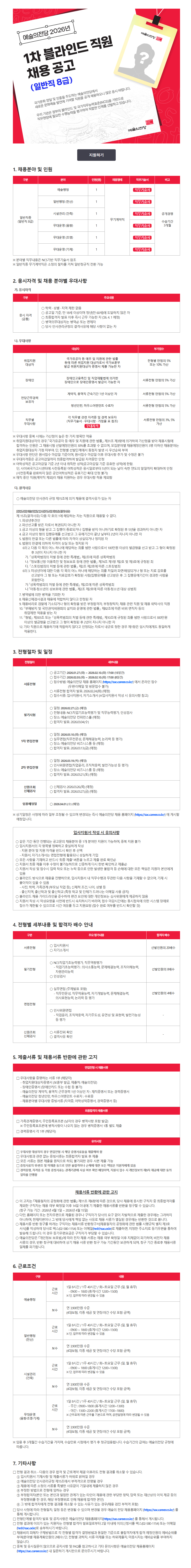 2026년 1차 예술의전당 블라인드 채용 공고입니다.